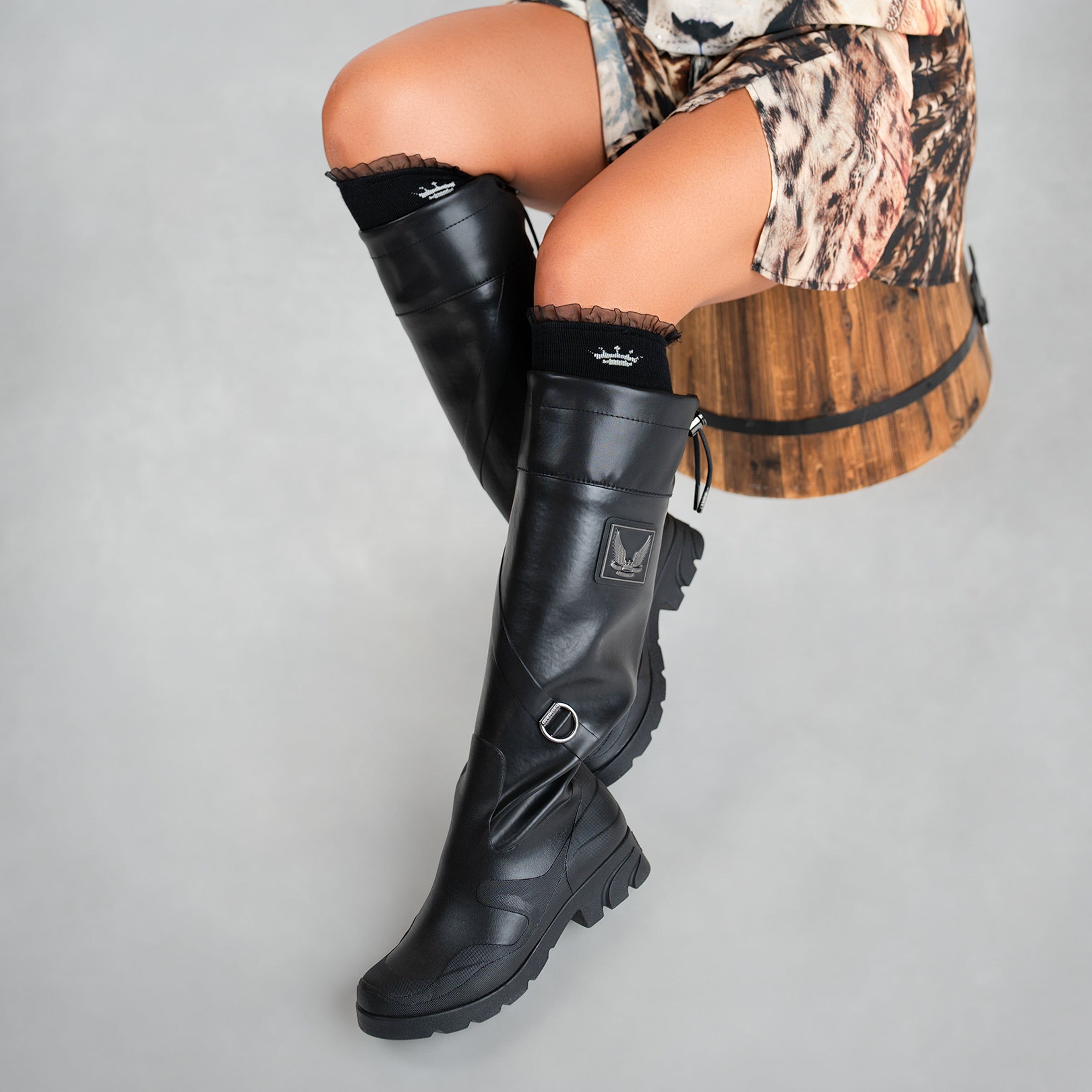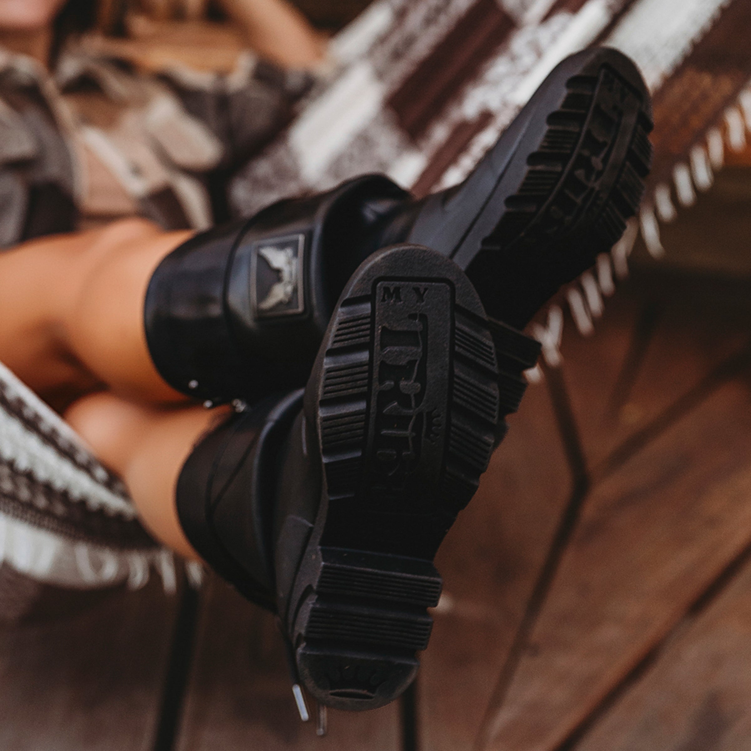 To maintain your sassiest appearance and shield your skin from direct rubber contact, we suggest pairing our boots with the exclusive My Tribe custom socks.