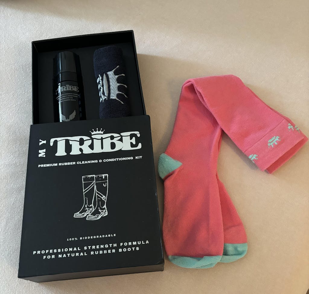 My Tribe's Premium Natural Rubber 2 in 1 Cleaner & Conditioner - the product that cleans and adds sass to your boots! Made from coconut oil derivatives and protective waxes, this fully biodegradable cleaner acts like a spa day for your boots.
